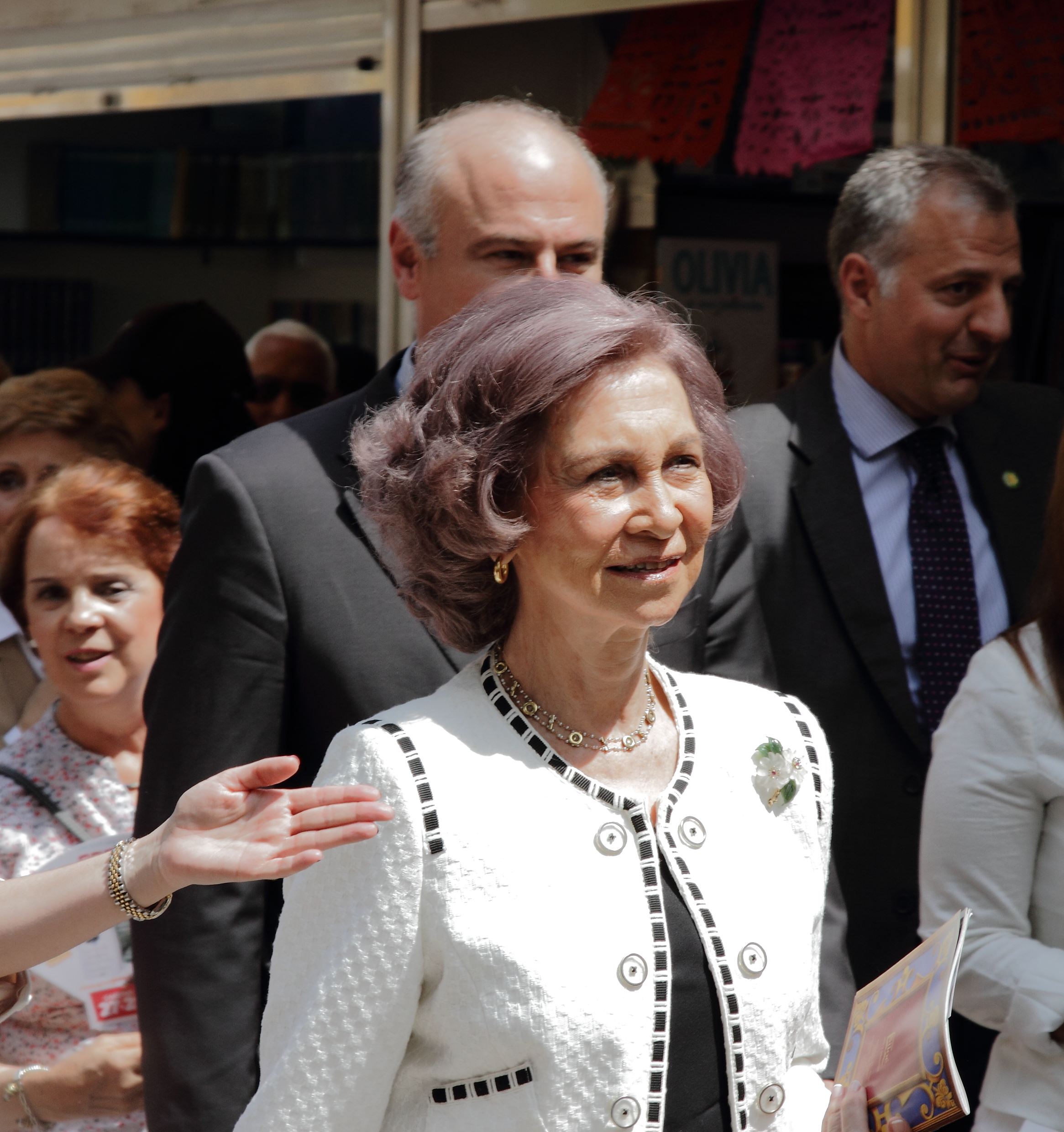 Como ya es habitual, Doña Sofía realizaba su visita a esta popular feria instalada en el céntrico Parque del Retiro de Madrid. A las doce del mediodía, una hora después de que las casetas subiesen sus persianas, la Reina comenzaba el recorrido por el Paseo de Coches acompañada por el subsecretario de Educación, Cultura y Deporte, Fernando Benzo, la alcaldesa de Madrid, Ana Botella; la consejera de Empleo, Turismo y Cultura de la Comunidad de Madrid, Ana Isabel Mariño, y el director de la Feria, Teodoro Sacristán.